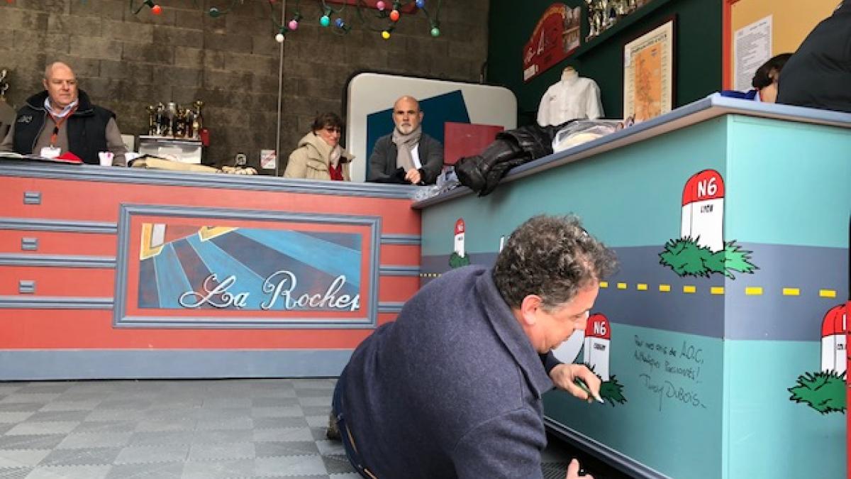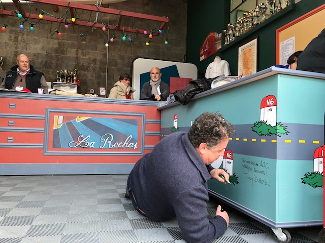 Notre ami Thierry Dubois n'a pas manqué de parapher notre stand boutique déjà décoré de ses dessins :