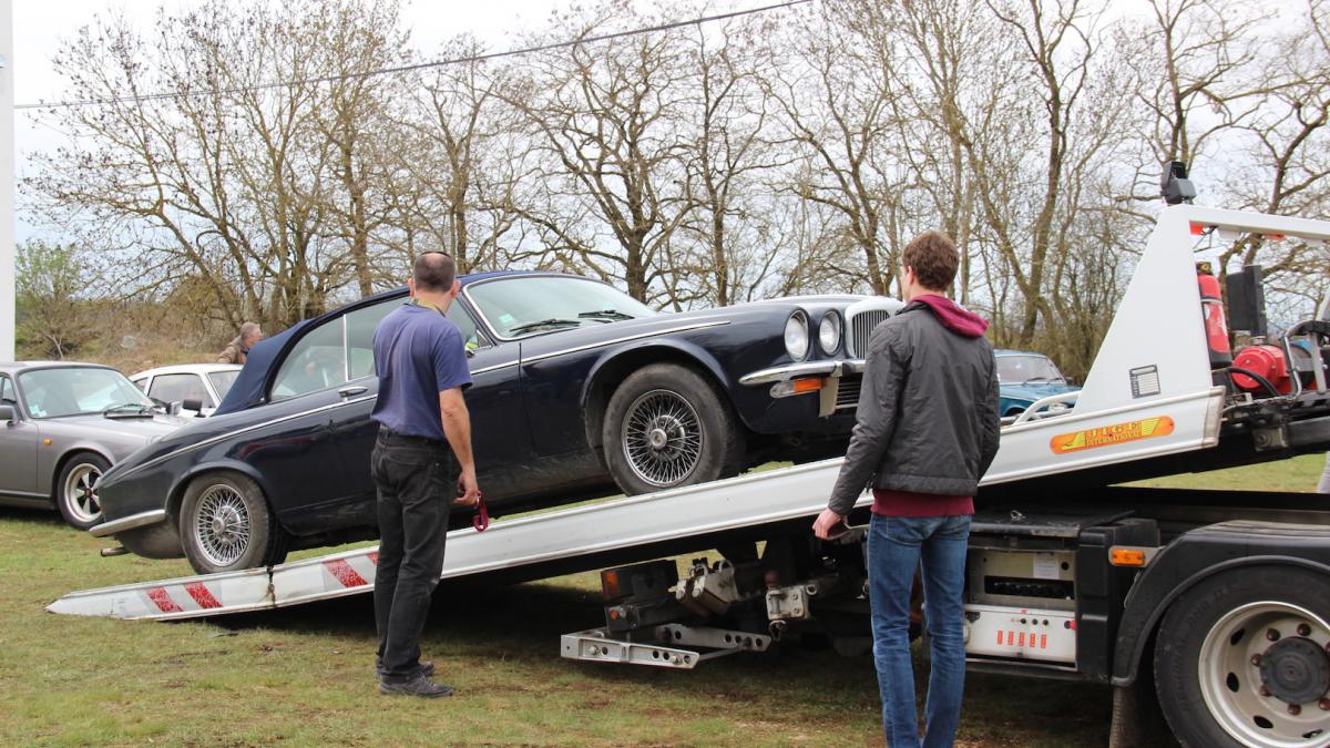 Le comble de ce RV a été la necessité d'une dépanneuse pour emporter la belle Jaguar Daimler de François qui ce matin a fait un gros caprice: