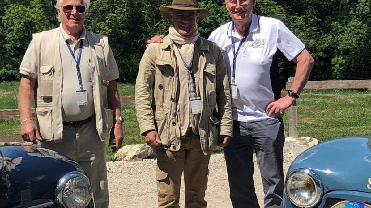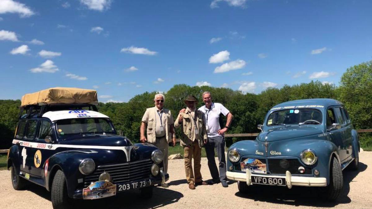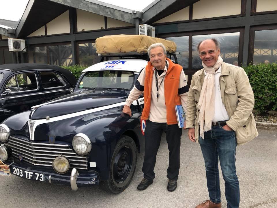 Messieurs Thierry Peugeot en 203 cabriolet de 1956 et Xavier Crespin Directeur Général de l’Aventure Peugeot