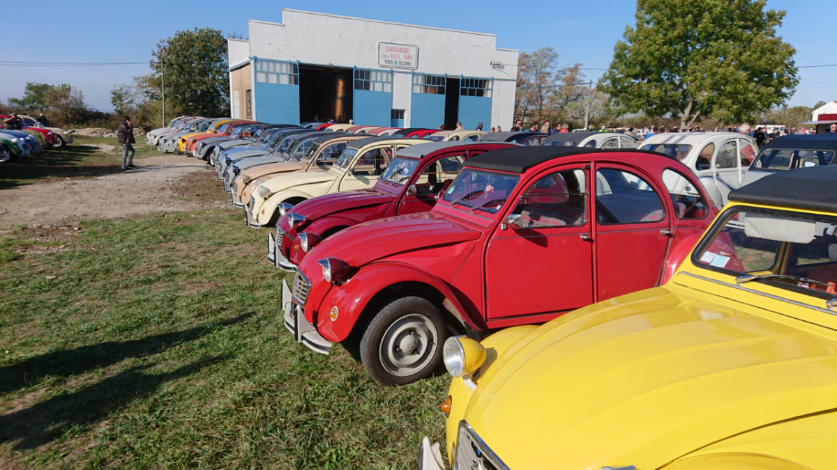 Organisé avec la collaboration des "Titines de la Côte", pas moins de 110 2 CV Citroën (= 220 CV !) ont gravi sans encombre la montée de La Rochepot pour venir à ce RV.