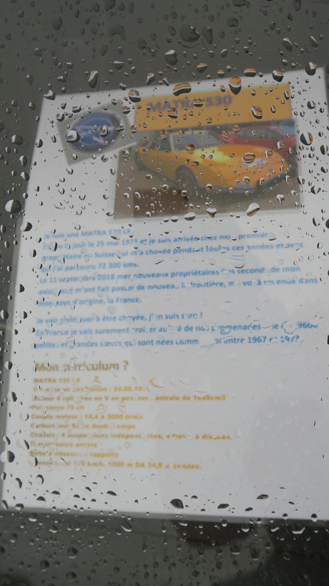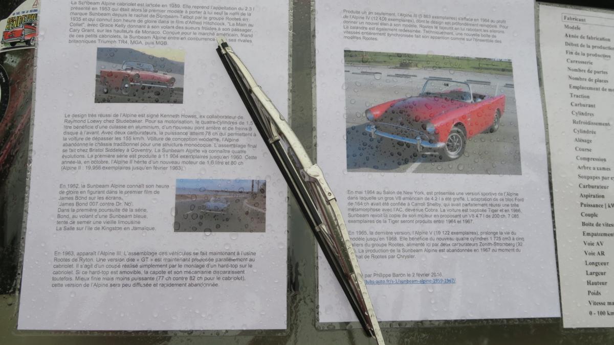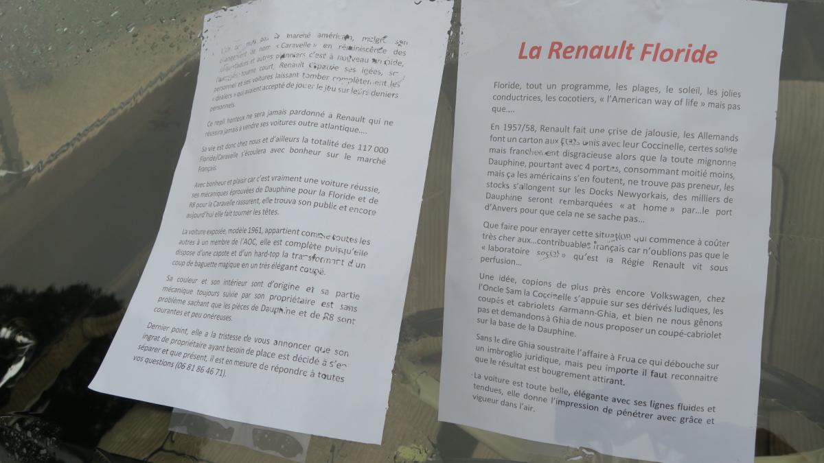 Derrière le pare brise on pouvait lire un descriptif détaillé et un historique de chaque auto.