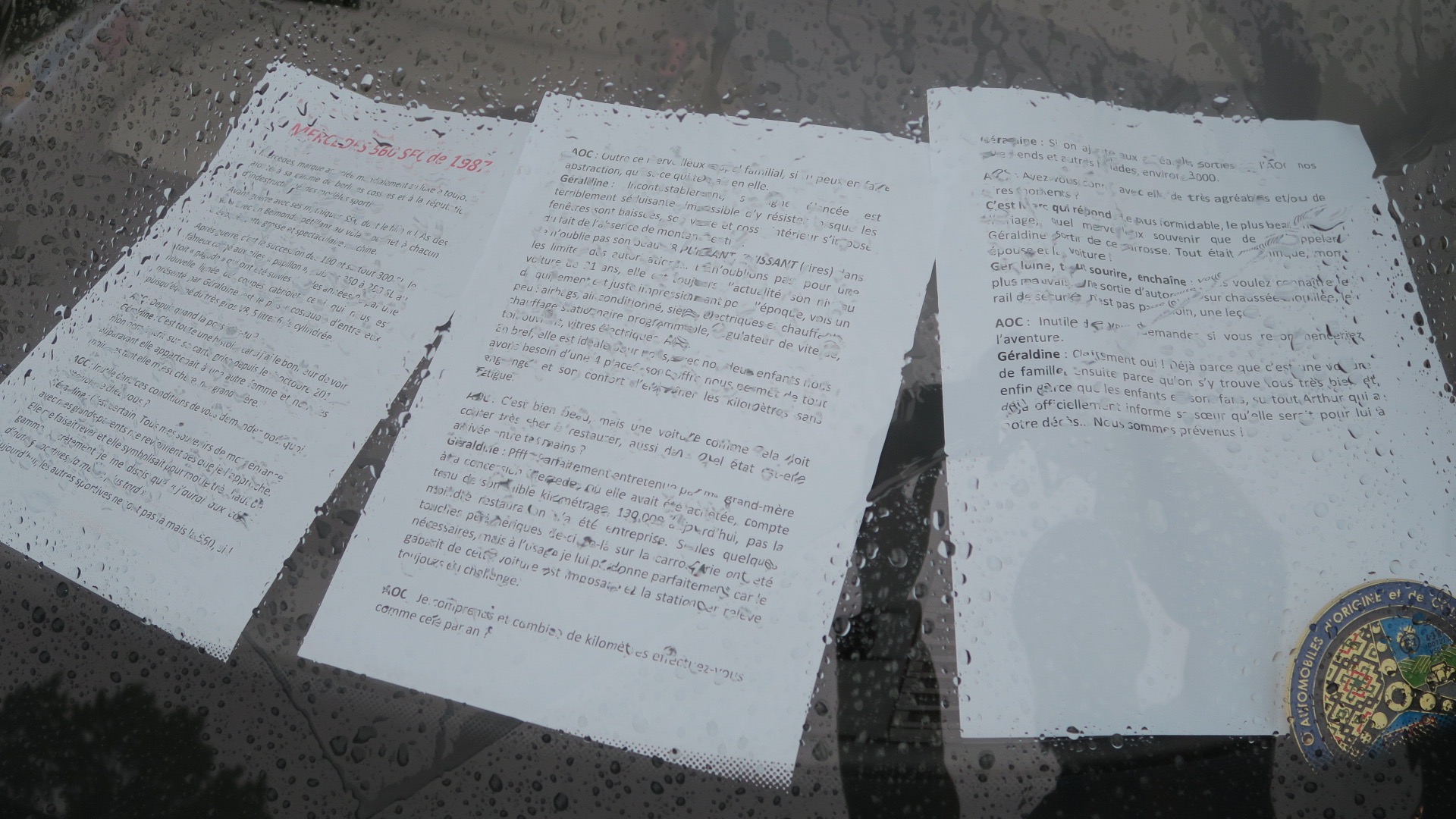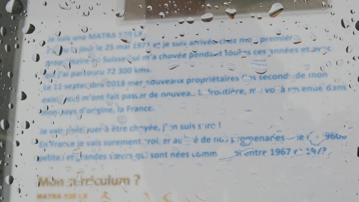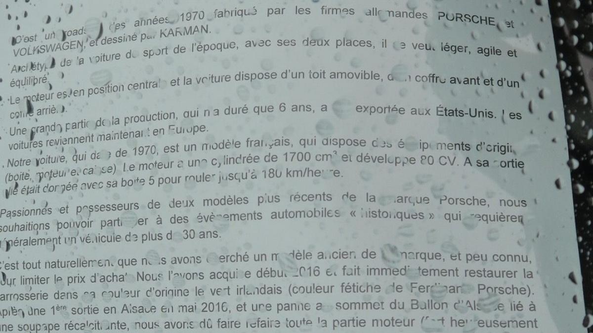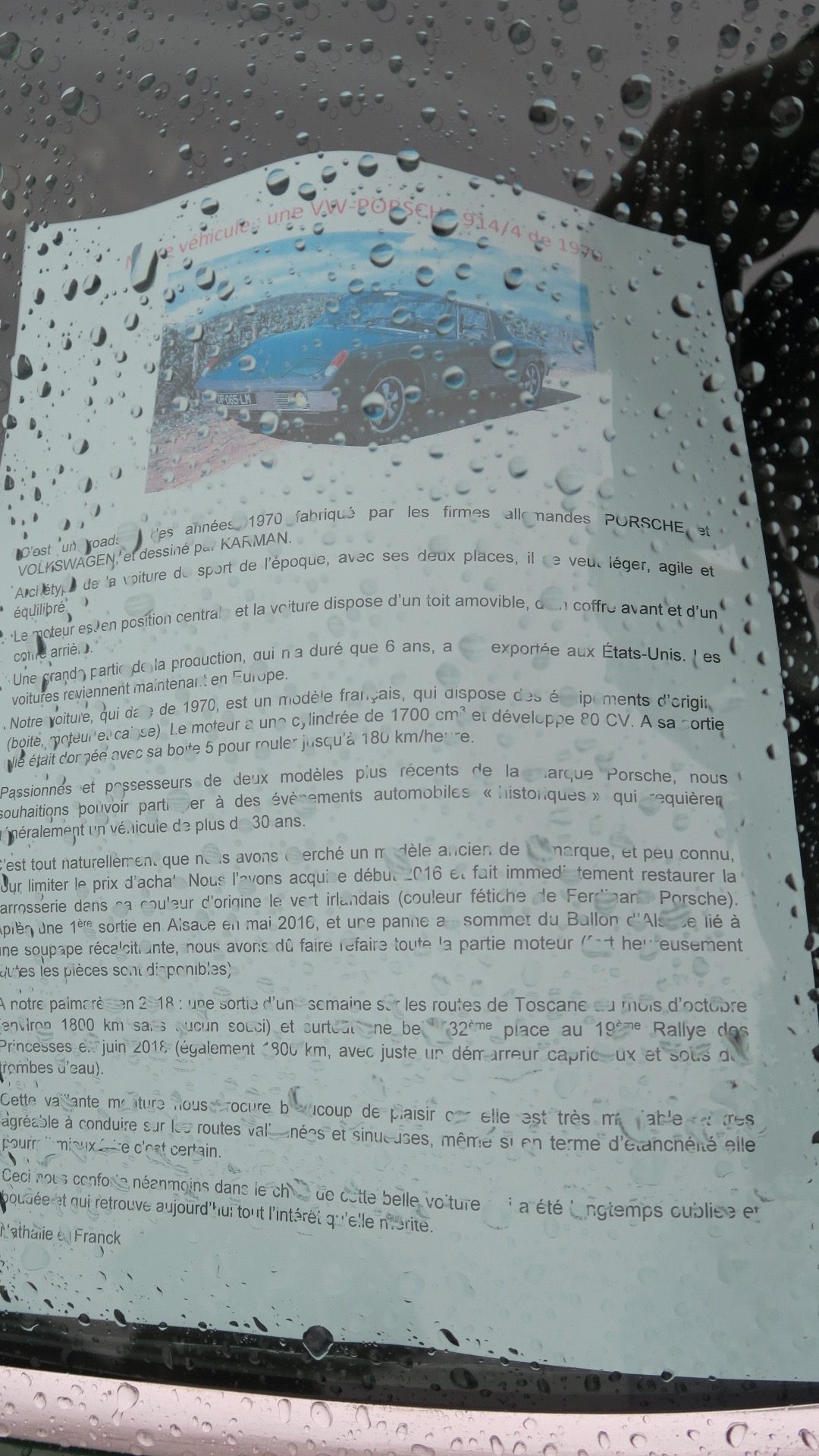 Derrière le pare brise on pouvait lire un descriptif détaillé et un historique de chaque auto.