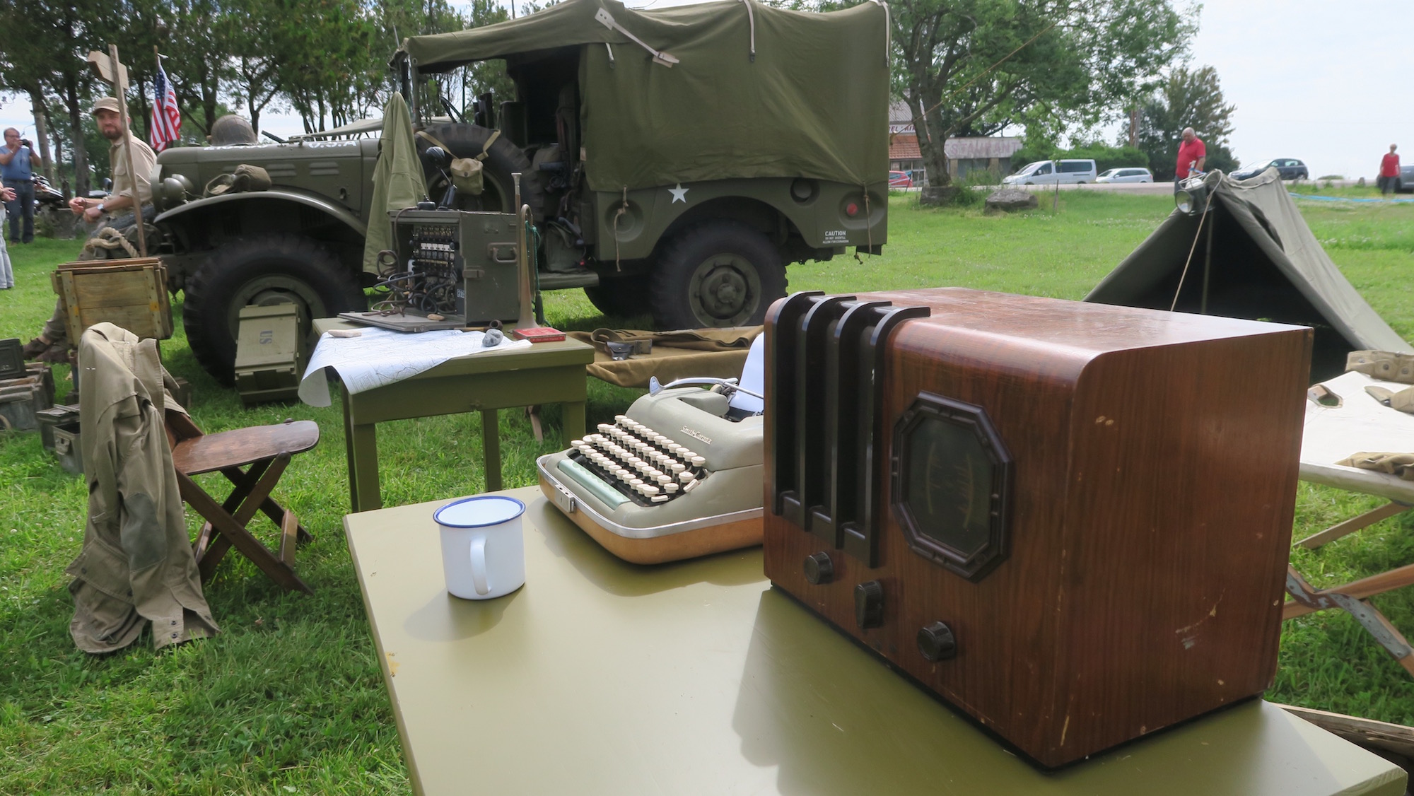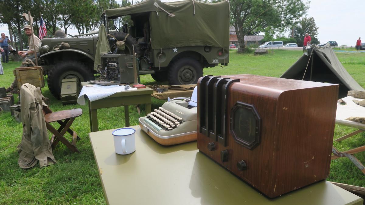 La reconstitution colle parfaitement à la réalité : poste de communication, machine à écrire et le poste de "radiophonie" diffusant les airs de swing, nouvelle musique qui annonçait déjà l'arrivée rock'n'roll.